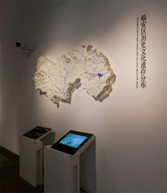 歷史展廳設(shè)計以“東南樂土·吳越家山”為主題,集中展示了臨安地方歷史文化,從史前開始,用“山高水長(史前至隋唐)、樹大根深(五代吳越)、枝繁葉茂(宋元明清)”三個單元,娓娓道來臨安的前世今生。