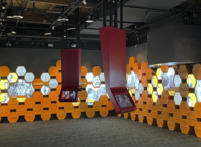 您知道這些橘黃色的盒子是什么嗎?長影舊址博物館利用電影中最常見的膠片盒,沿墻面擺放,改造為燈箱。膠片盒本身的亮麗橘色,形成該區(qū)域的整體色彩氛圍。改造后的燈箱,仿佛是一個個嬌嫩的蜂巢,夠創(chuàng)意吧?
