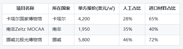 2. 本土設(shè)計(jì)師與國際明星事務(wù)所的價(jià)差 聘請(qǐng)?jiān)?middot;哈迪德建筑事務(wù)所設(shè)計(jì)阿塞拜疆國家博物館的費(fèi)用為本土團(tuán)隊(duì)的6倍,但其品牌效應(yīng)可帶動(dòng)后續(xù)旅游收入。這種“設(shè)計(jì)溢價(jià)”在發(fā)展中國家追趕型項(xiàng)目中尤為明顯。